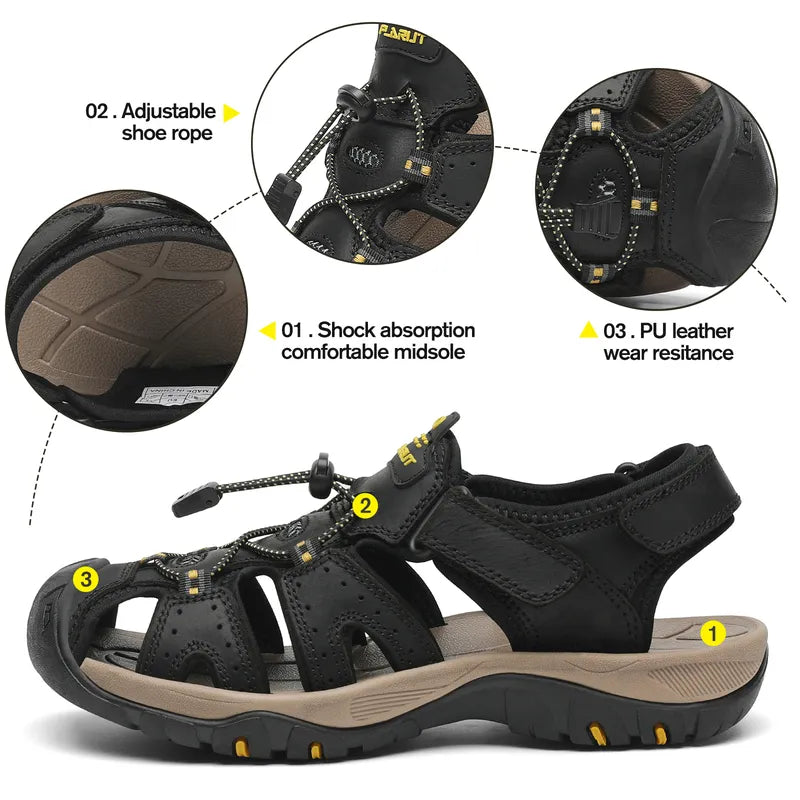 Equip yourself with sandals designed for your hiking expeditions. With sturdy rubber soles for grip and reduced foot pressure, they ensure comfort on rugged trails.
