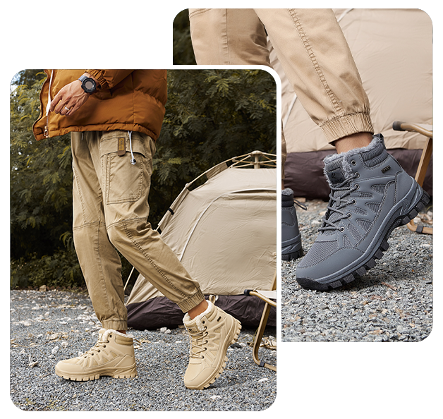 Equipaggiati con stivali progettati per le avventure nella stagione fredda. Con fodera isolante per il calore e suole antiscivolo per la stabilità, garantiscono comfort e sicurezza su percorsi innevati e ghiacciati.