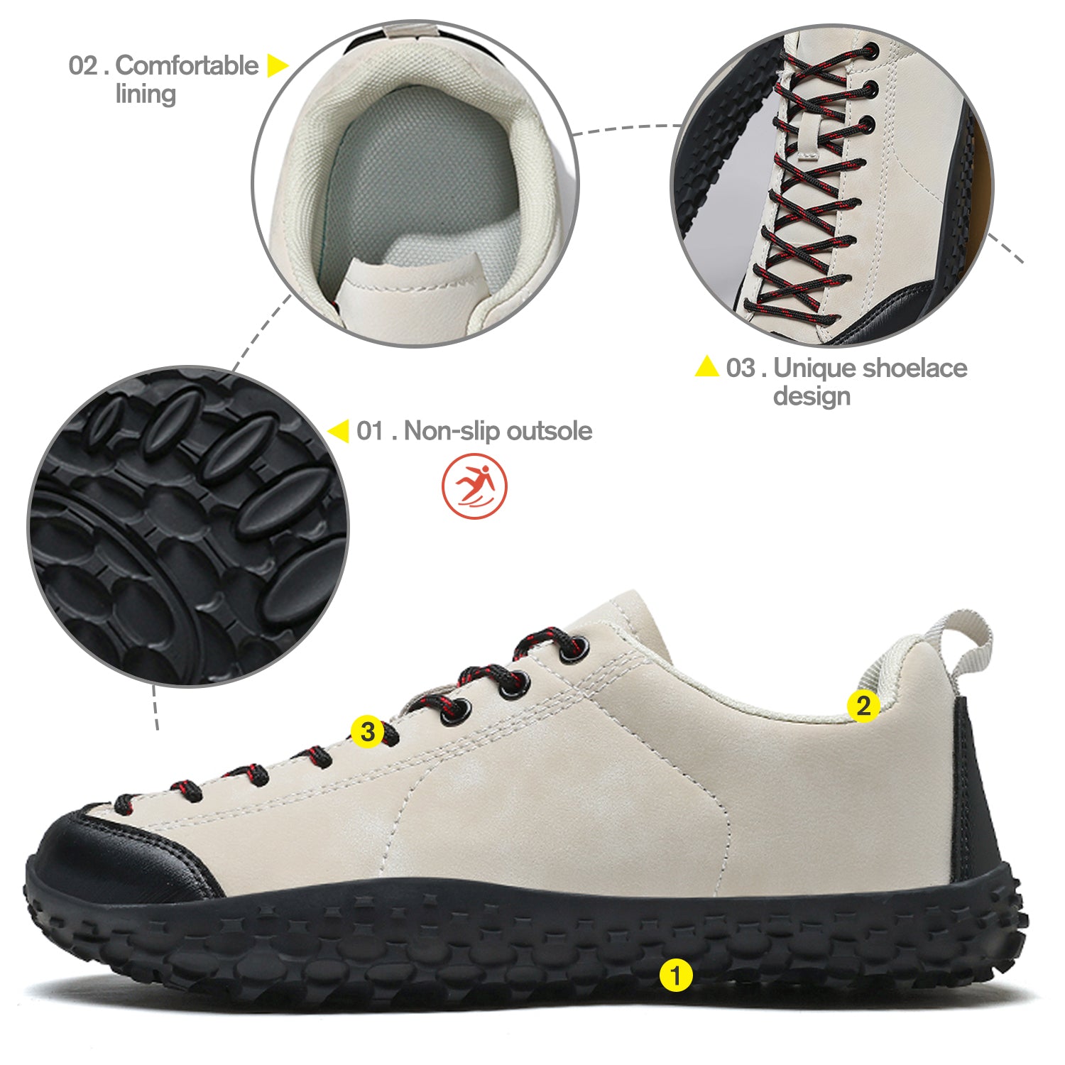 Crafted for freedom of movement and everyday adventures, these wide-fit barefoot shoes deliver natural comfort, stable grip, and versatile wear. The widened forefoot enhances balance, while the anti-slip rubber outsole adapts to trails, pavements, and everyday paths — perfect for walking, hiking, city life, or casual wear.